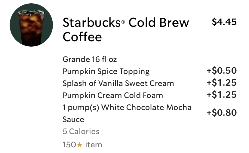 Ask for a cold brew, add white mocha, add sweet cream mixed in, add pumpkin cold foam, and pumpkin spice on top.