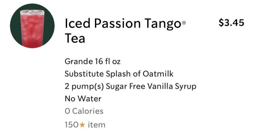 Order a passion tea, no water, substitute oat milk, add 2 pumps of sugar-free vanilla.