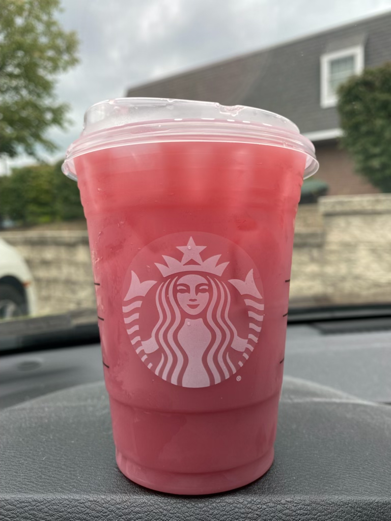 Ask for a mango dragonfruit lemonade, add strawberry purée.